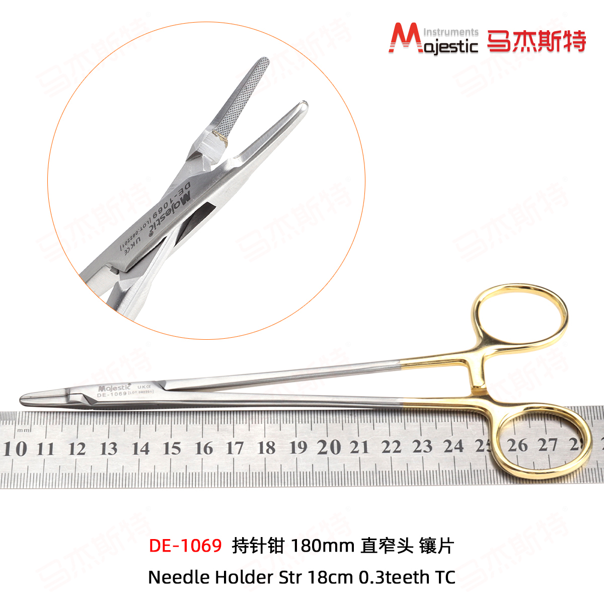DE-1069 Needle Holder straight 18cm 0.3teeth TC